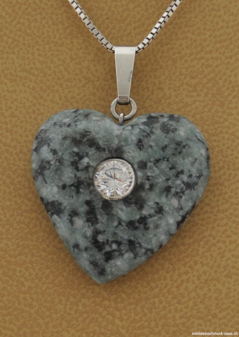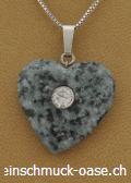 Granit Bergün Herz mit Zirkonia GraubündenSilber 925ca. 3 x 3 cm Dicke 0.8 cmUnikatvon Hand gefertigt