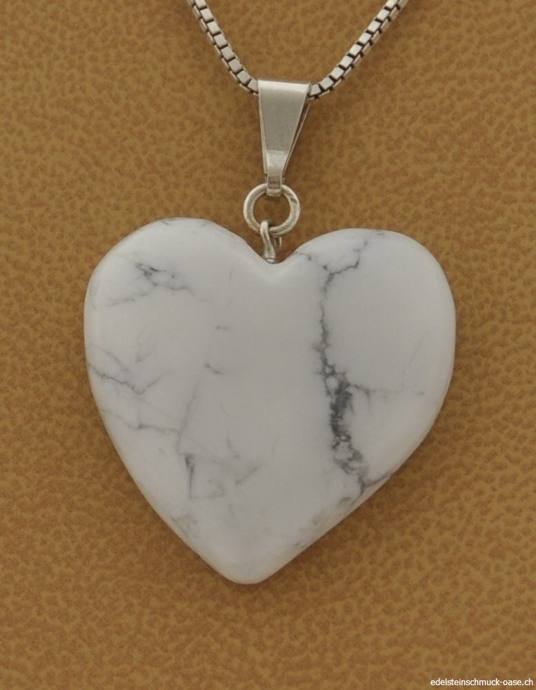 Howlith Herzanhänger Silber 925ca. 3 x 3 cm Dicke 0.5 cmUnikatvon Hand geschliffen