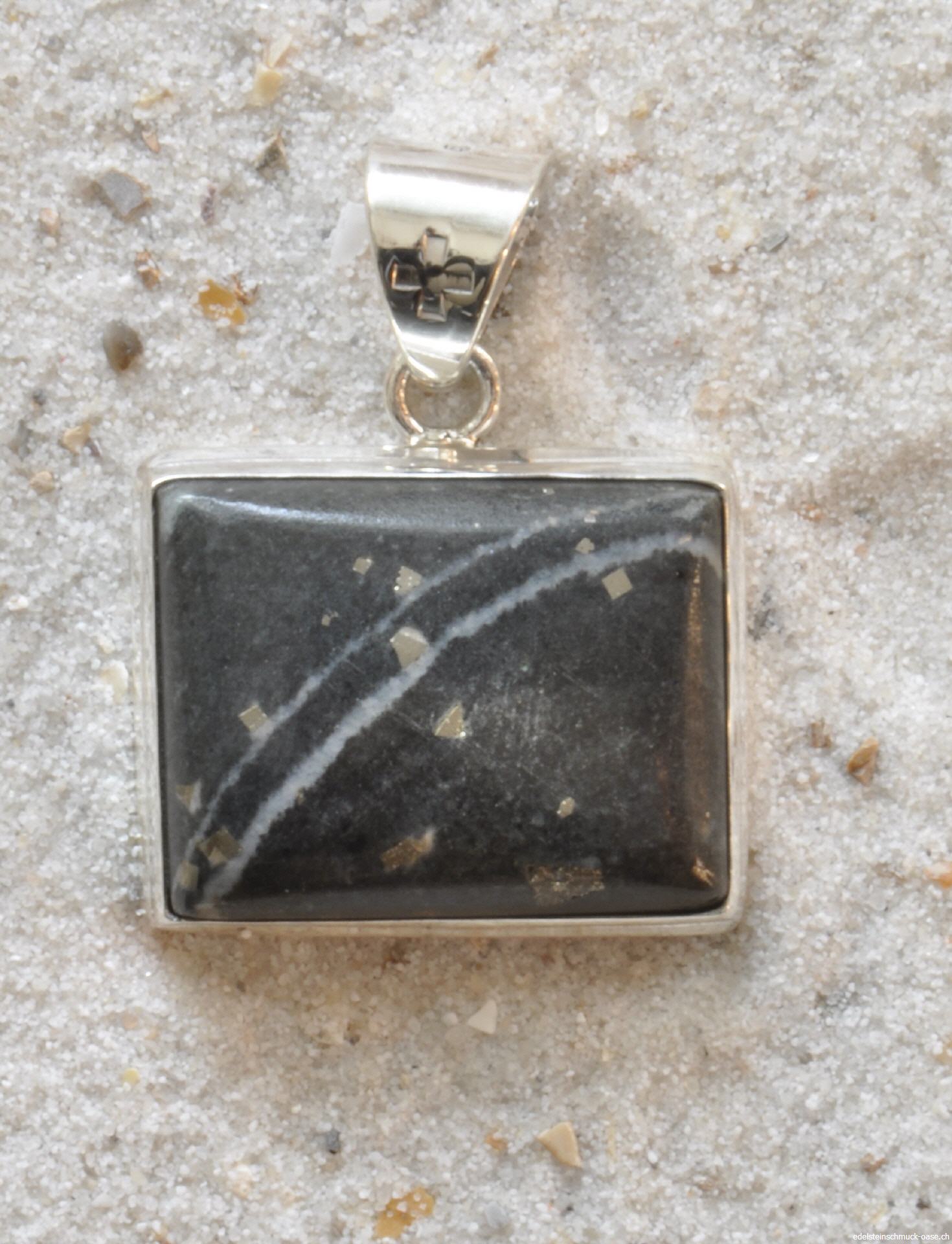 Anhänger CH Pyrithaltiger TonschieferFassung: Silber 925Grösse: 23 x 29 mm