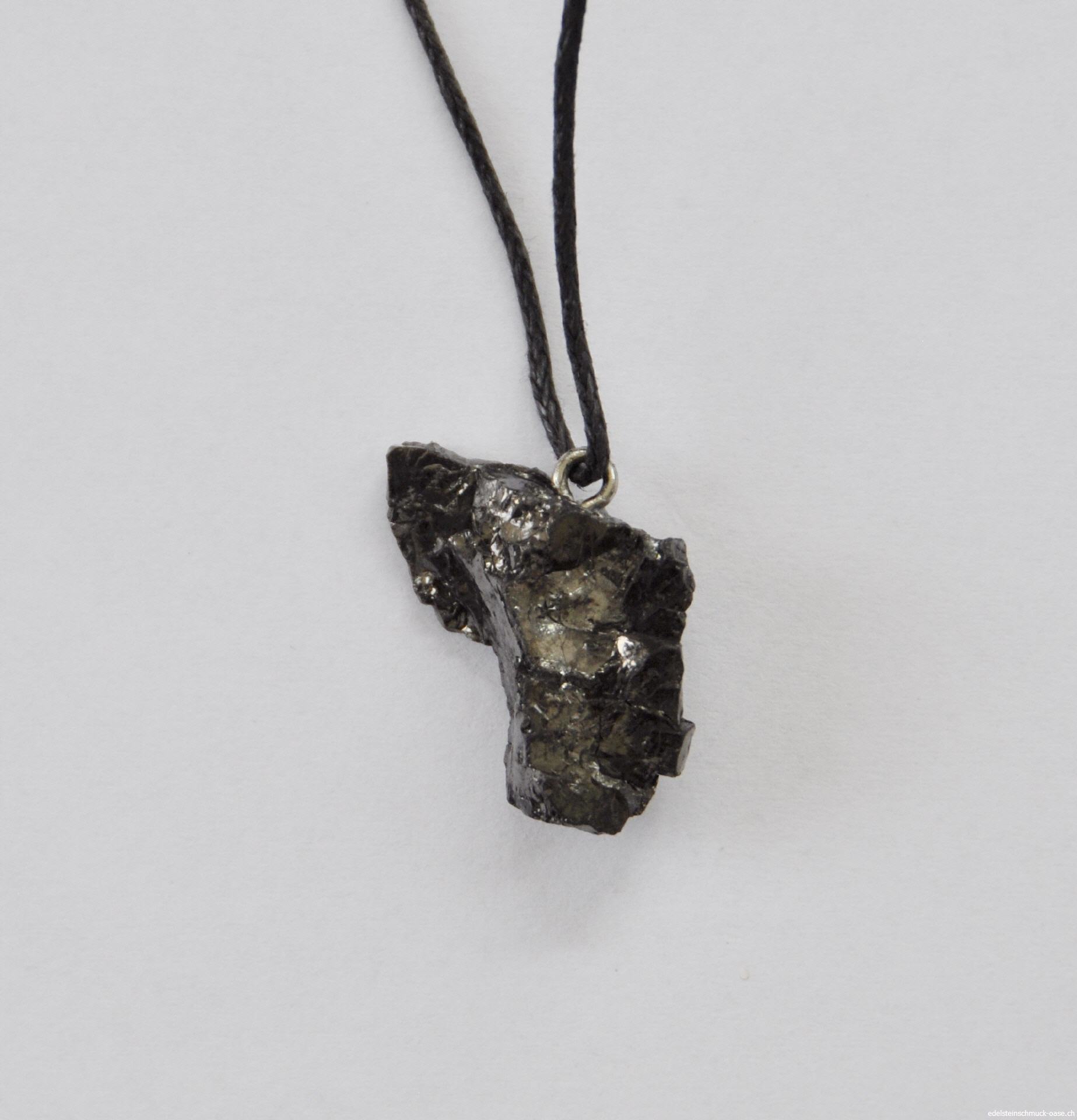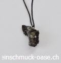 Schungit Edel kristallin Anhängerca. 18 x 25 mm mit Kordel Edelstahlöse