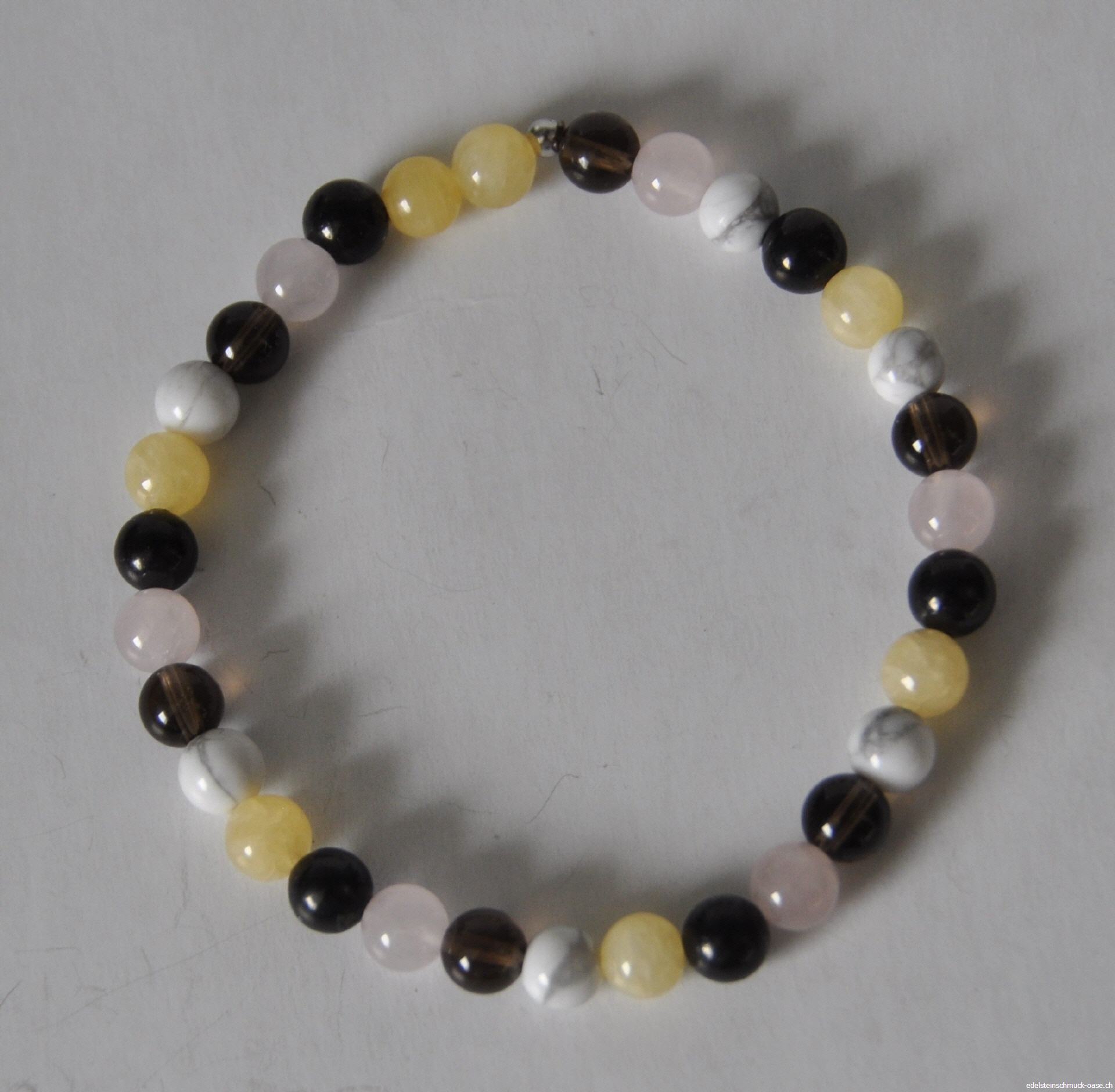 Div Steine Armband Elast Steine 6 mm 18 -19 cm Steine Howlith, Rauchquarz, Rosenquarz Schungit Calzit gelb