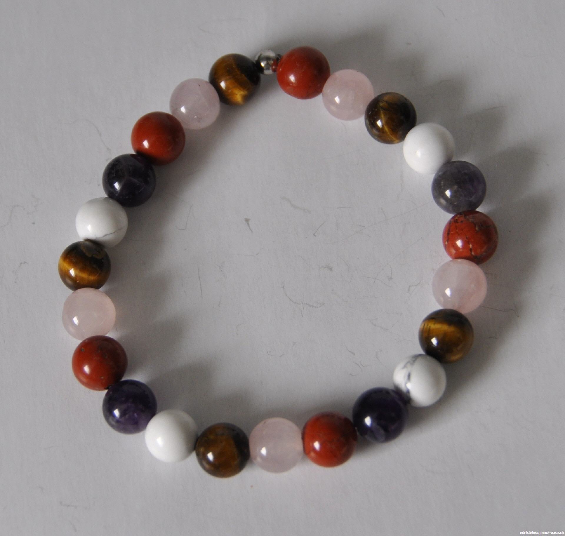 Div. Steine Armband Elast Steine 8 mm 18 - 19 cm Steine Amethyst, Howlith, Tigerauge, Rosenquarz, Karneol