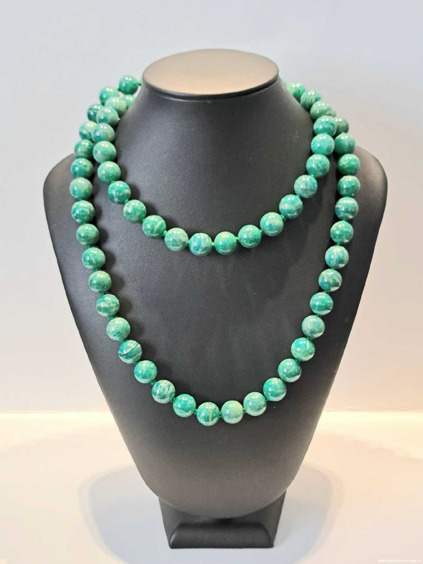 Amazonit Halskette geknüpft Russland Kugeln 10 - 10.5 mm Länge 80 - 81 cm