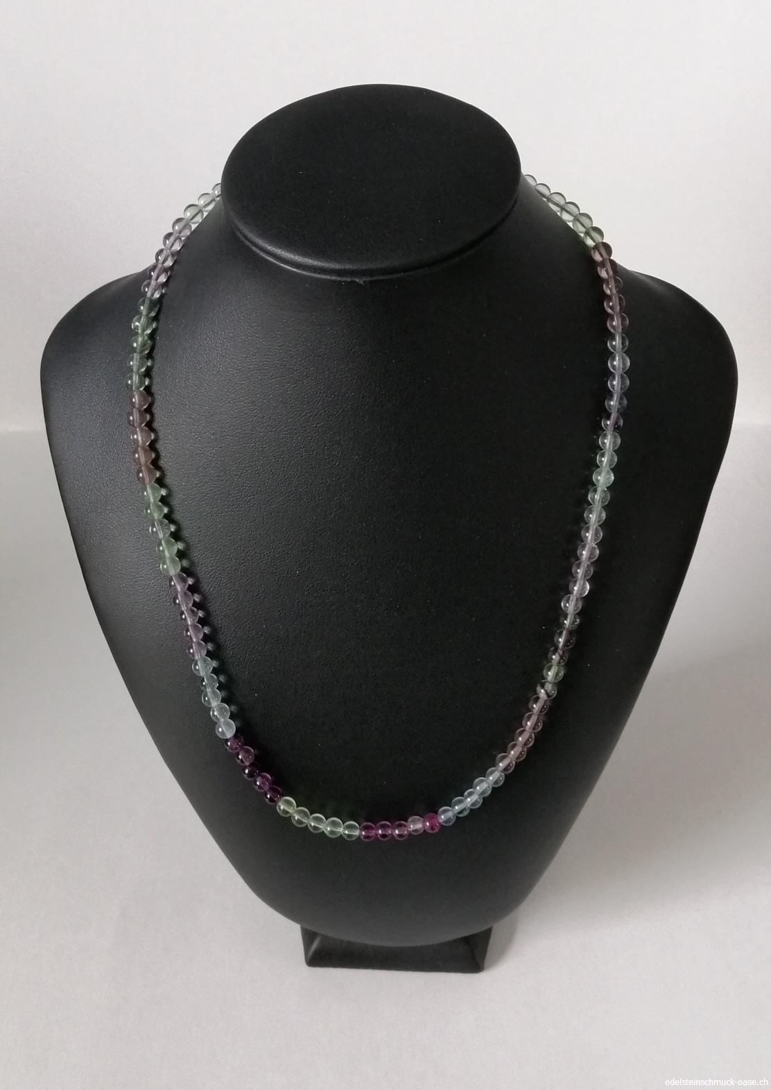 Fluorit Halskette4mm Kugeln 44 cm Karabinerverschlusss Silber 925 rhodiniert