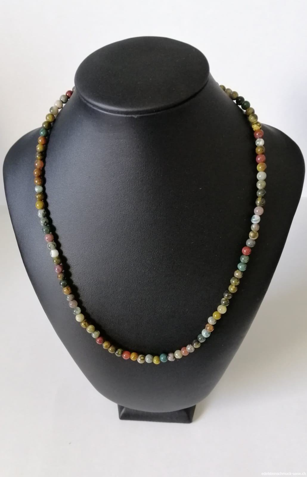 Ozean Jaspis Halskette4 mm Kugeln 44 cm Karabinerverschluss Silber 925 rhodiniert