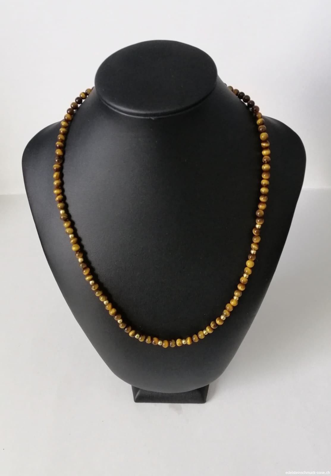 Tigerauge Halskette4 - 5 mm Kugeln 44 cm Karabinerverschluss und ZwischenteileSilber 925 vergoldet