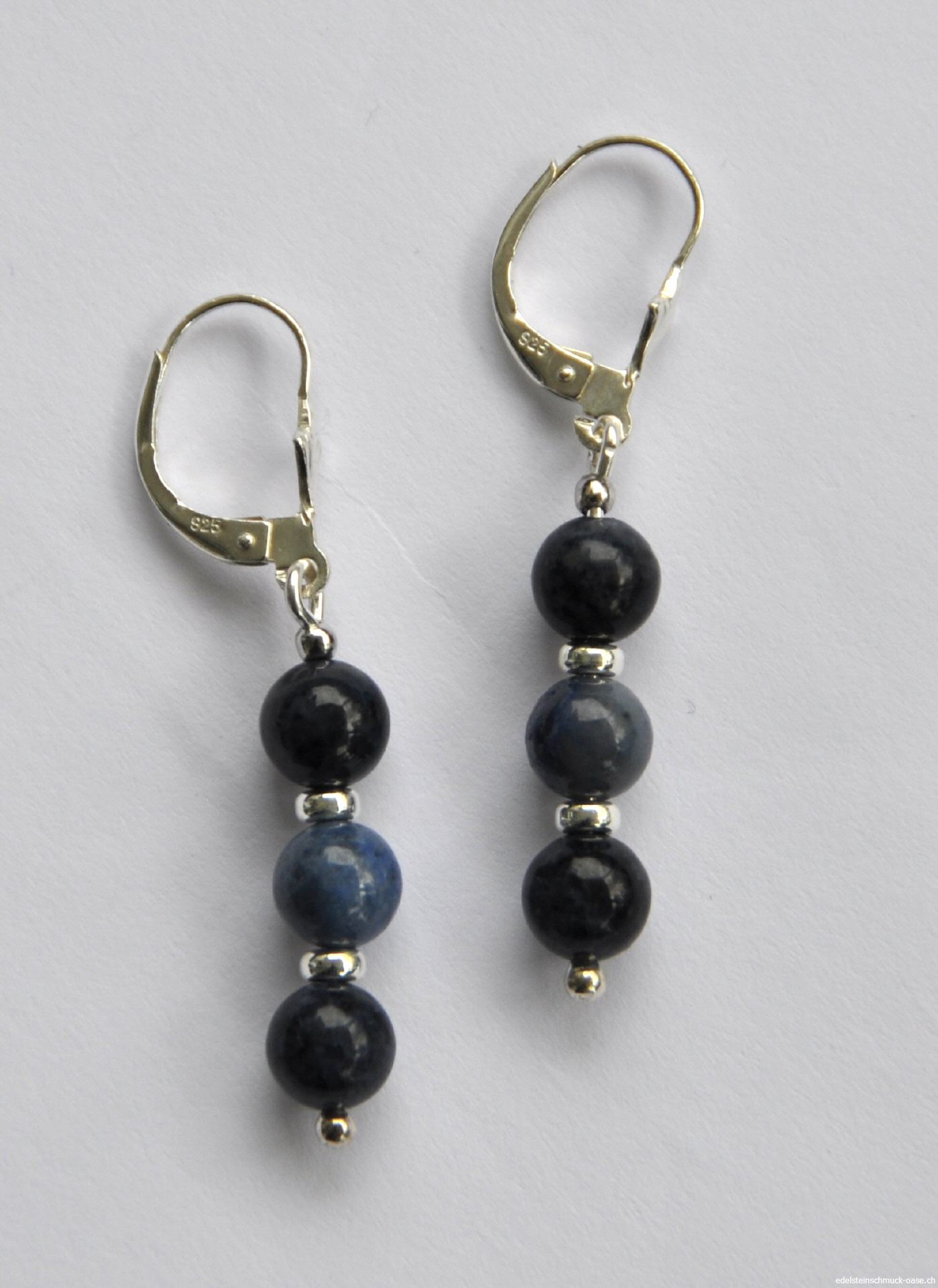 Dumortierit Ohrhänger Kugeln 6 mm Brisur und Zwischenteile Silber 925