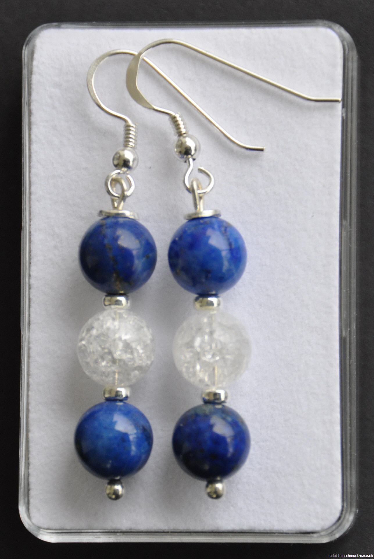 Lapislazuli/Bergkristall Ohrhänger mit SilberteilenKugeln 8 mm Schweizerhaken und Zwischenteile Silber 925