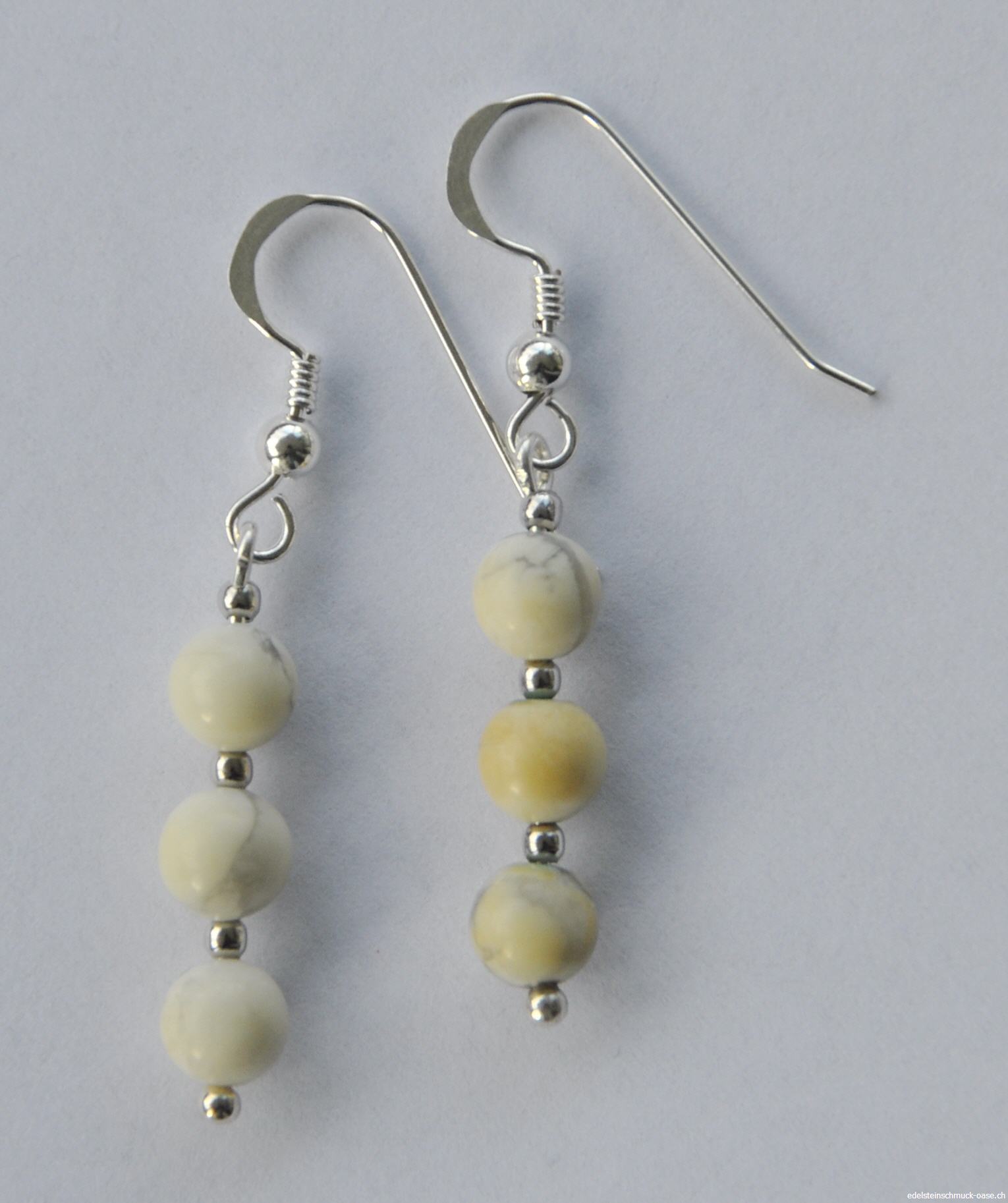 Magnesit Ohrhänger Kugeln 6 mm Zwischenteile und Schweizerhaken Silber 925 Rhodiniert
