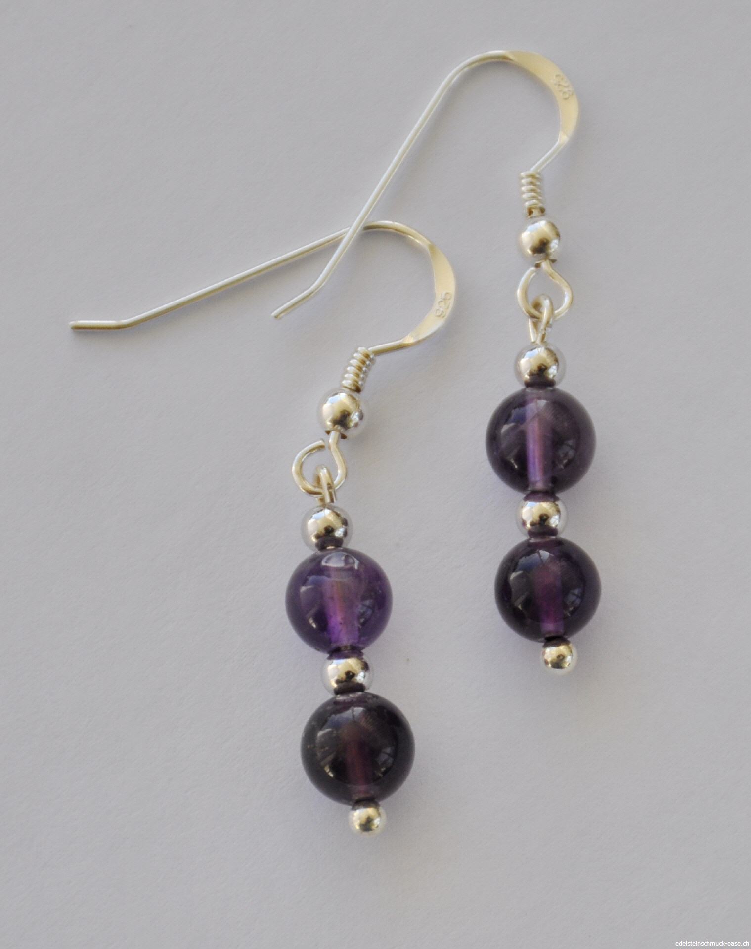 Amethyst Ohrhänger Schweizerhaken Silber 925 Rhodiniert