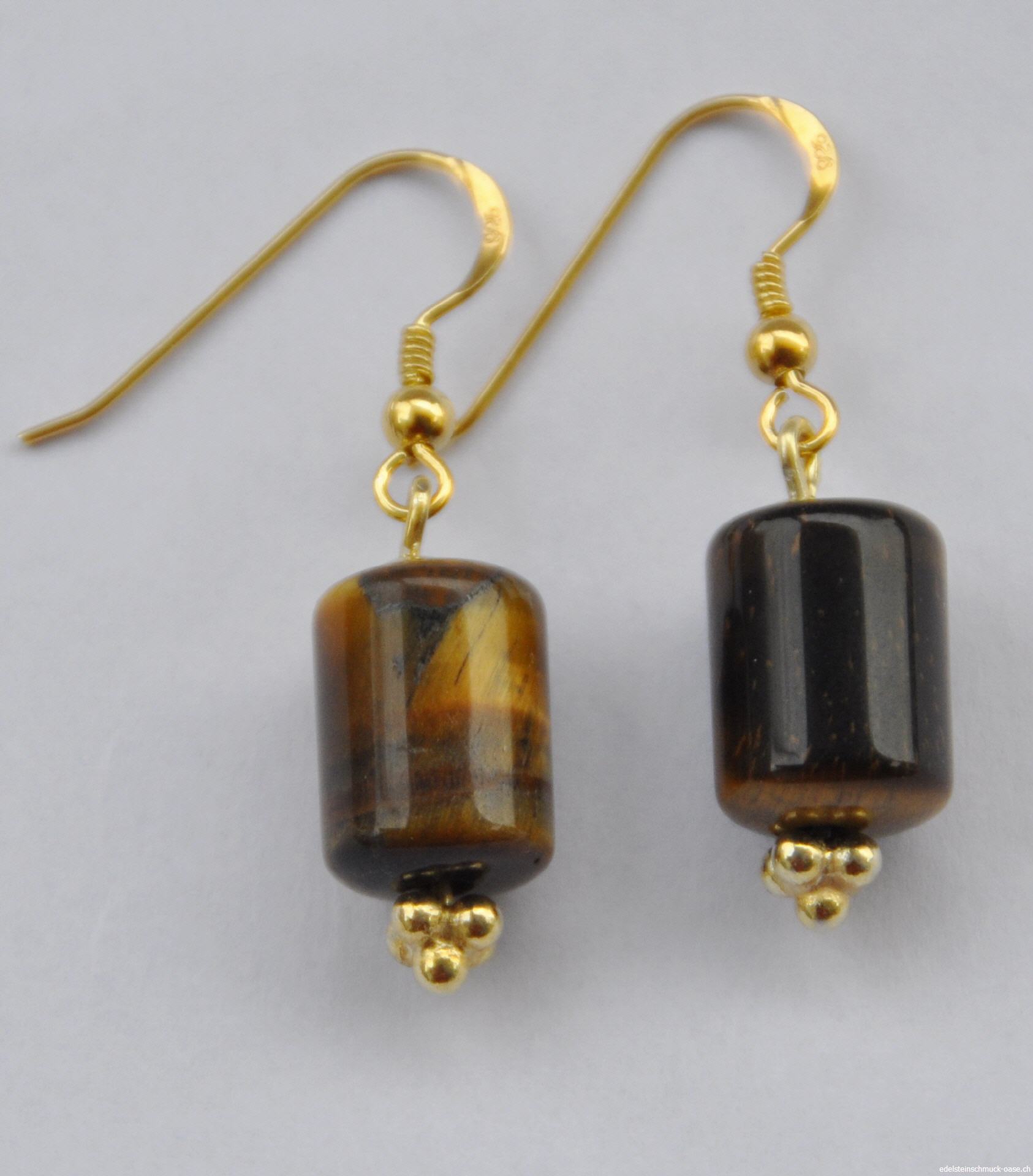 Tigerauge Ohrhänger Kolben Länge 18 mm Silber/vergoldet 925