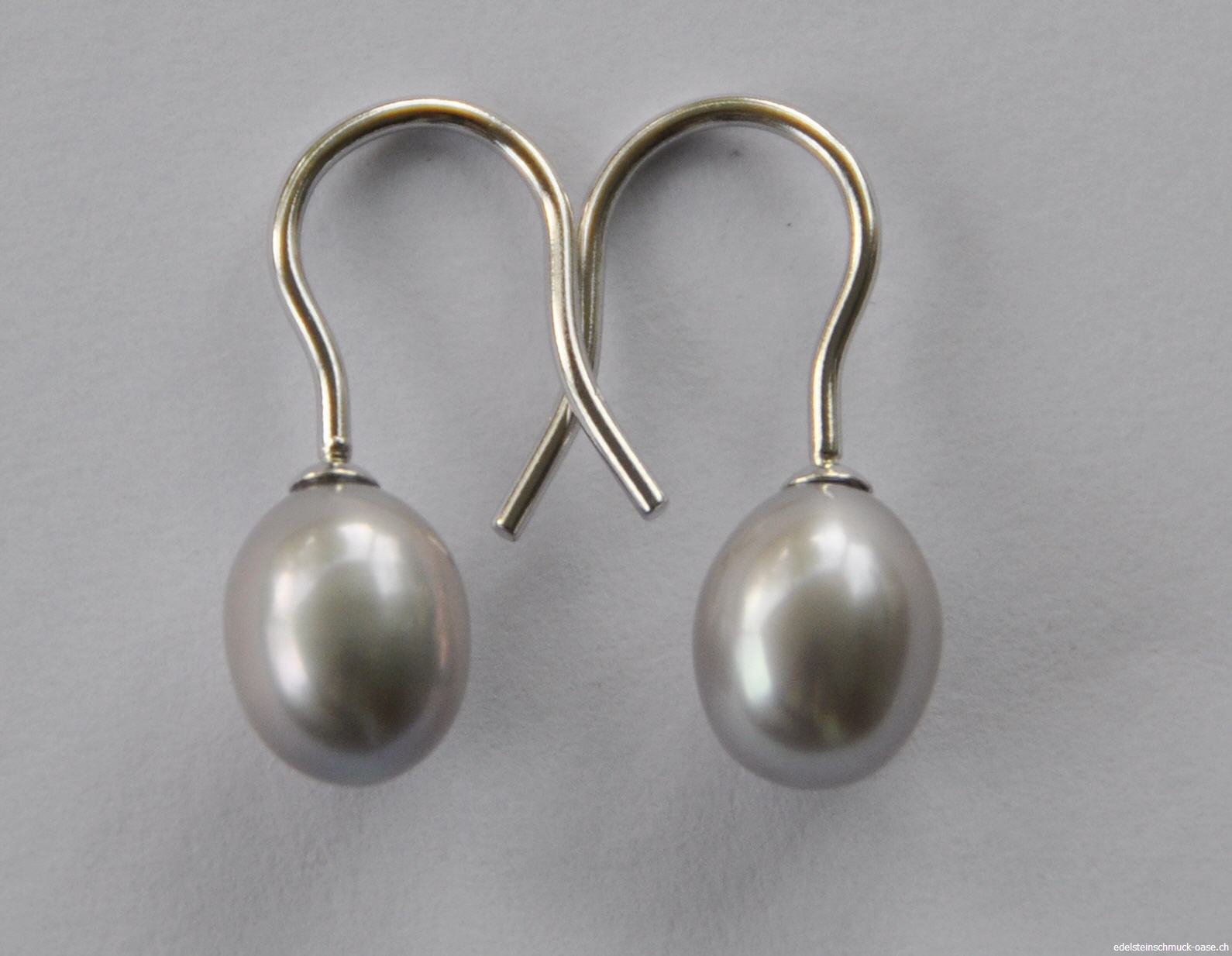 Perle Zuchtperle silber Ohrhaken Perle 7.7 mm Silber 925 rhodiniert