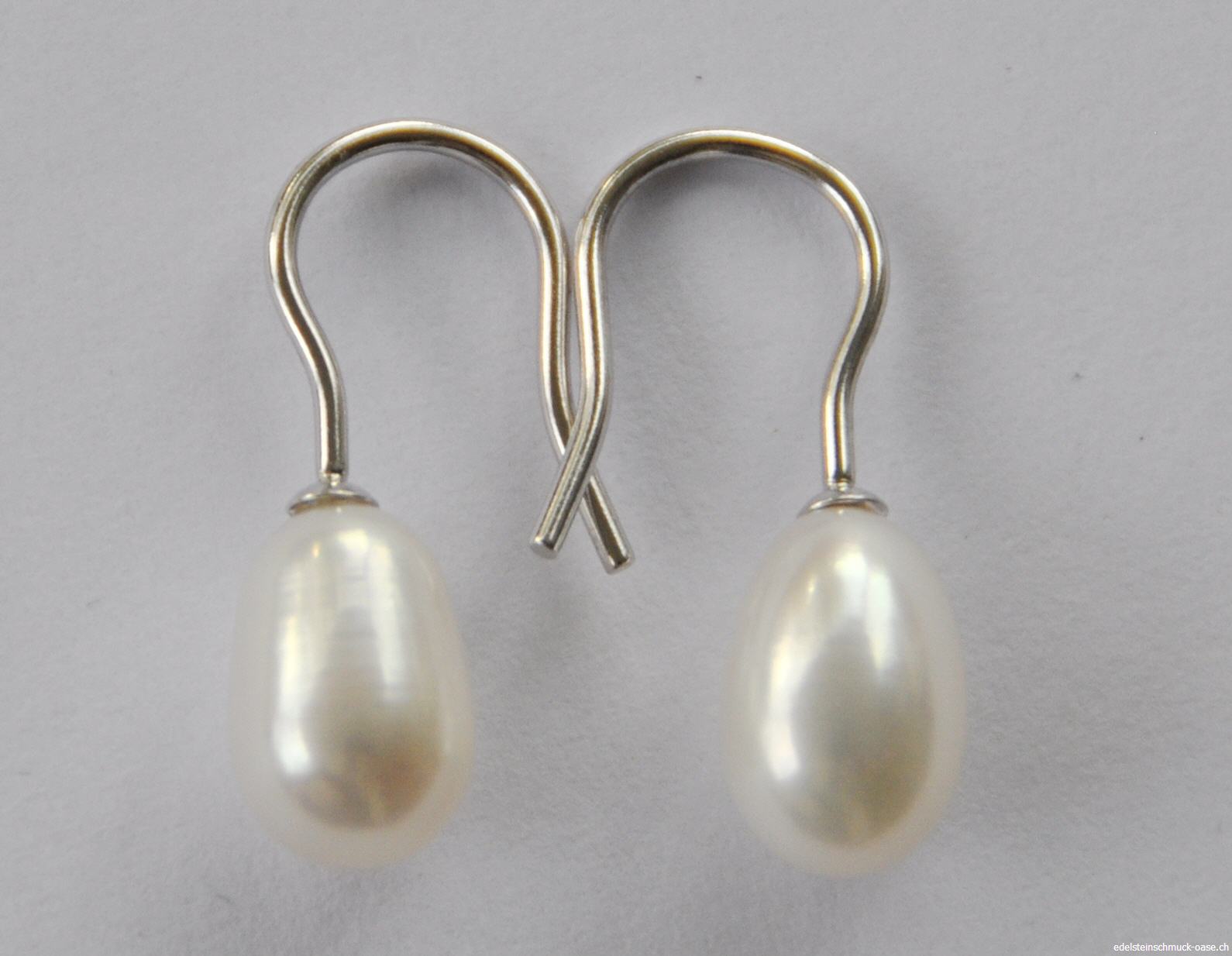 Perle Zuchtperle weiss Ohrhaken Perle 7.5 mm Silber 925 rhodiniert