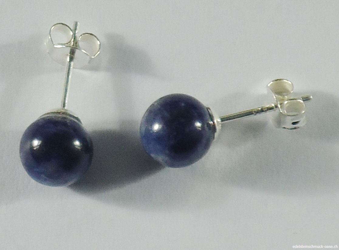 Sodalith Ohrstecker8 mm Silber 925 mit Stempel