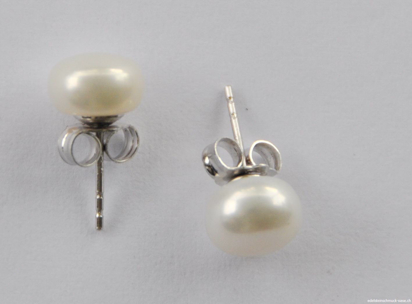 Perle Zuchtperle weiss OhrsteckerPerle 7.7 mm Silber 925 rhodiniert